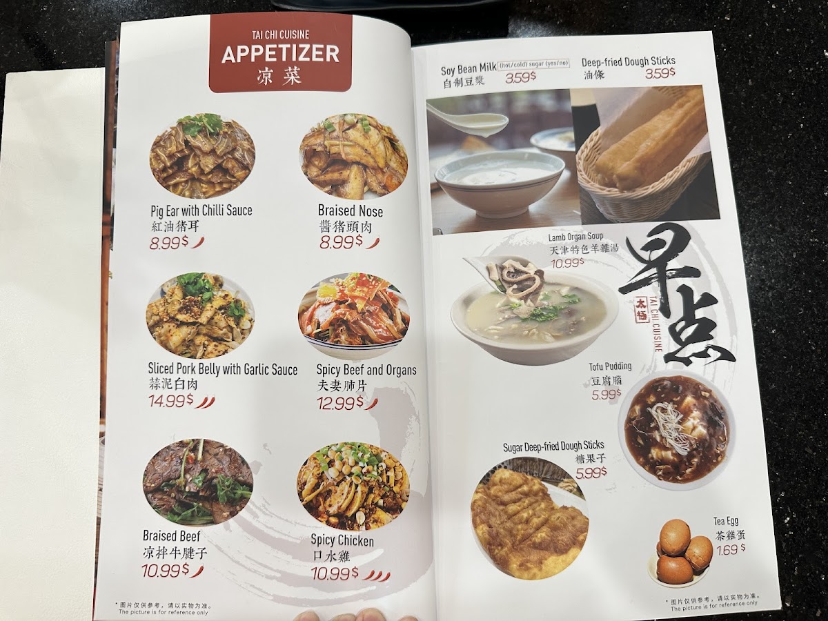 Tai Chi Cuisine Menu